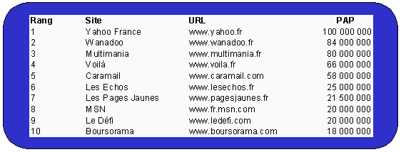 Cette technique ressemble à s'y méprendre à un enregistrement au 3611, l'annuaire des pagesjaunes du Minitel. A ceci près que les annuaires internet référencent des sites internet; les moteurs de recherche quant à eux référencent les pages internet. Il existerait plus de mille "répertoires et moteurs de recherche dans le monde, libres à la consultation, et accessibles aisément n'importe où dans le monde. Les moteurs de recherche sont parmi les principaux vecteurs d'audience sur Internet. D'après une étude réalisée par Fokusgroup, les internautes se dirigent vers un site via :